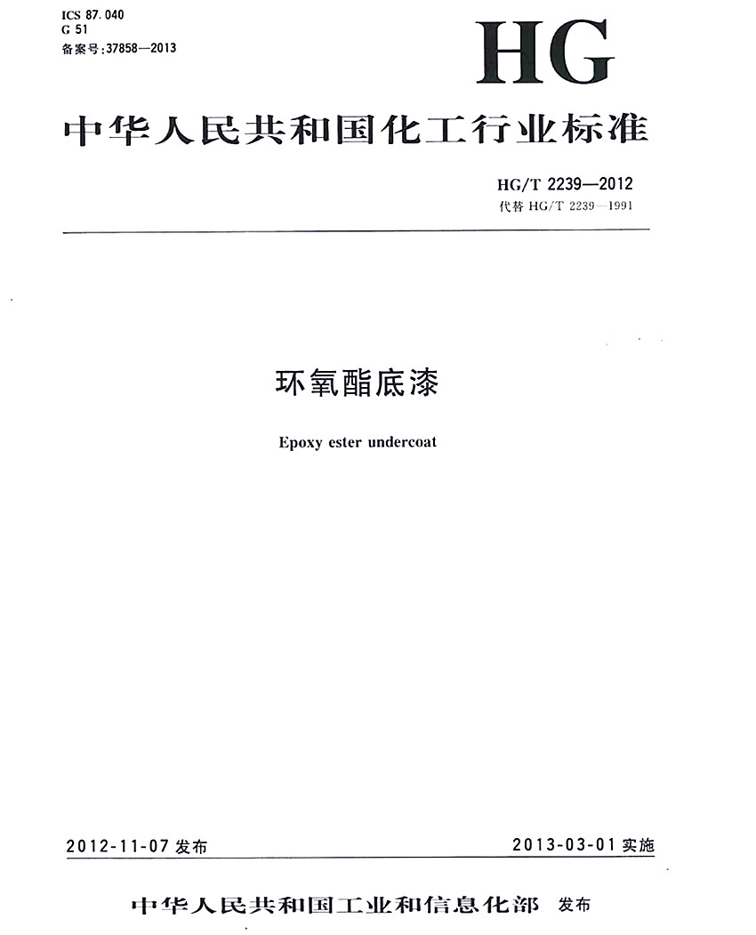 HG/T 2239-2012環氧酯底漆標準代替HG/T 2239-1991