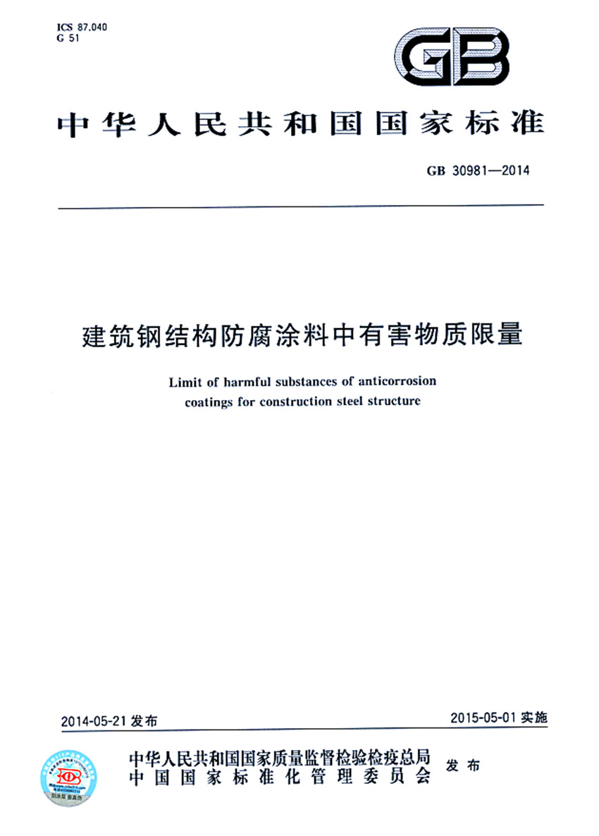建筑鋼結構防腐涂料中有害物質限量標準GB 30981-2014