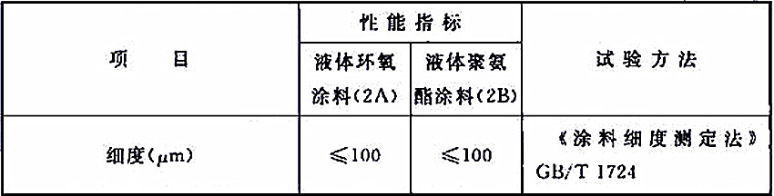 2 涂料的兩個組分應由同一生產商配套提供,涂料性能應滿足本規范表2.1、表2.2-1或表2.2-2規定的性能指標。